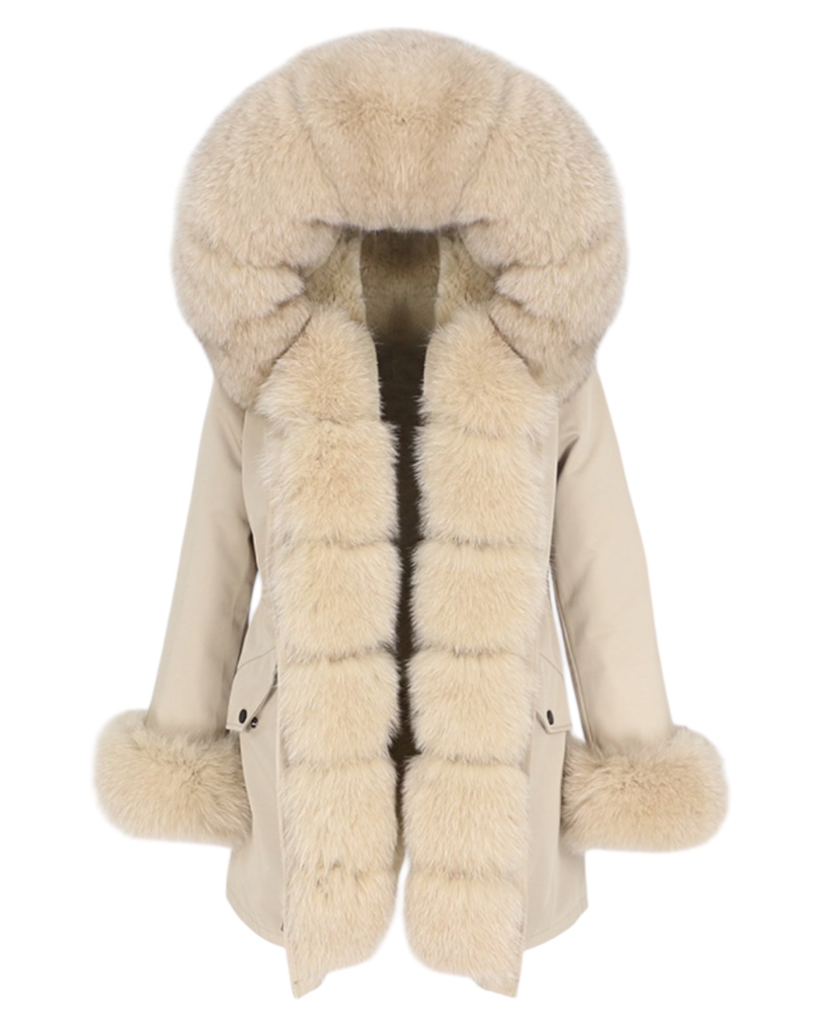 The voluminous fur collar, the cuddly soft teddy fur lining, and delicate cuffs ensure maximum comfort. An elegant fur braid along the inside of the zipper stylishly completes the look.