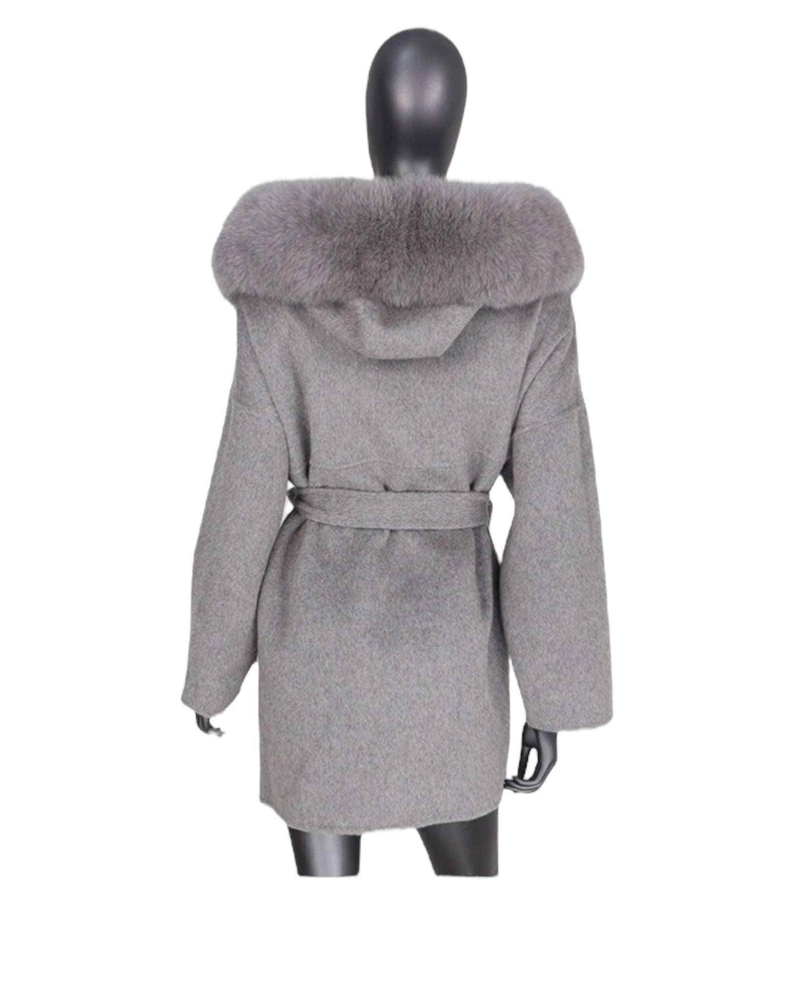 The glamorous oversized coat impresses with its feminine design, which is characterized by the use of the finest fox fur.