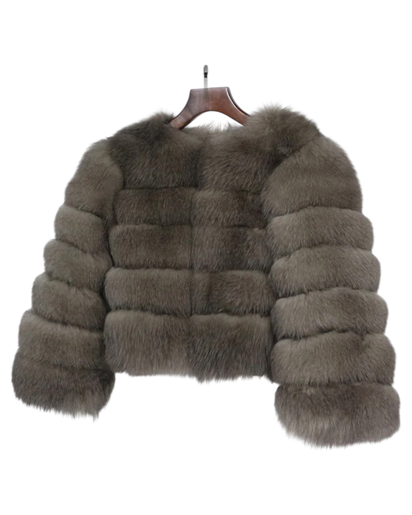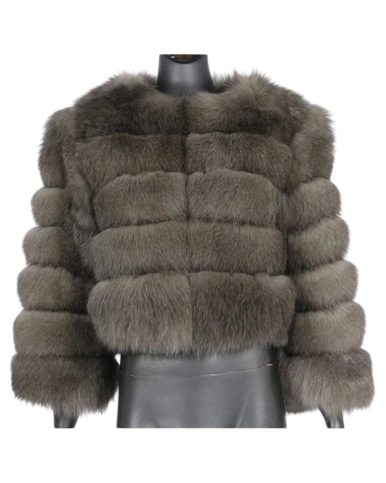 The glamorous fur jacket impresses with its feminine design, which is characterized by the use of the finest fox fur.