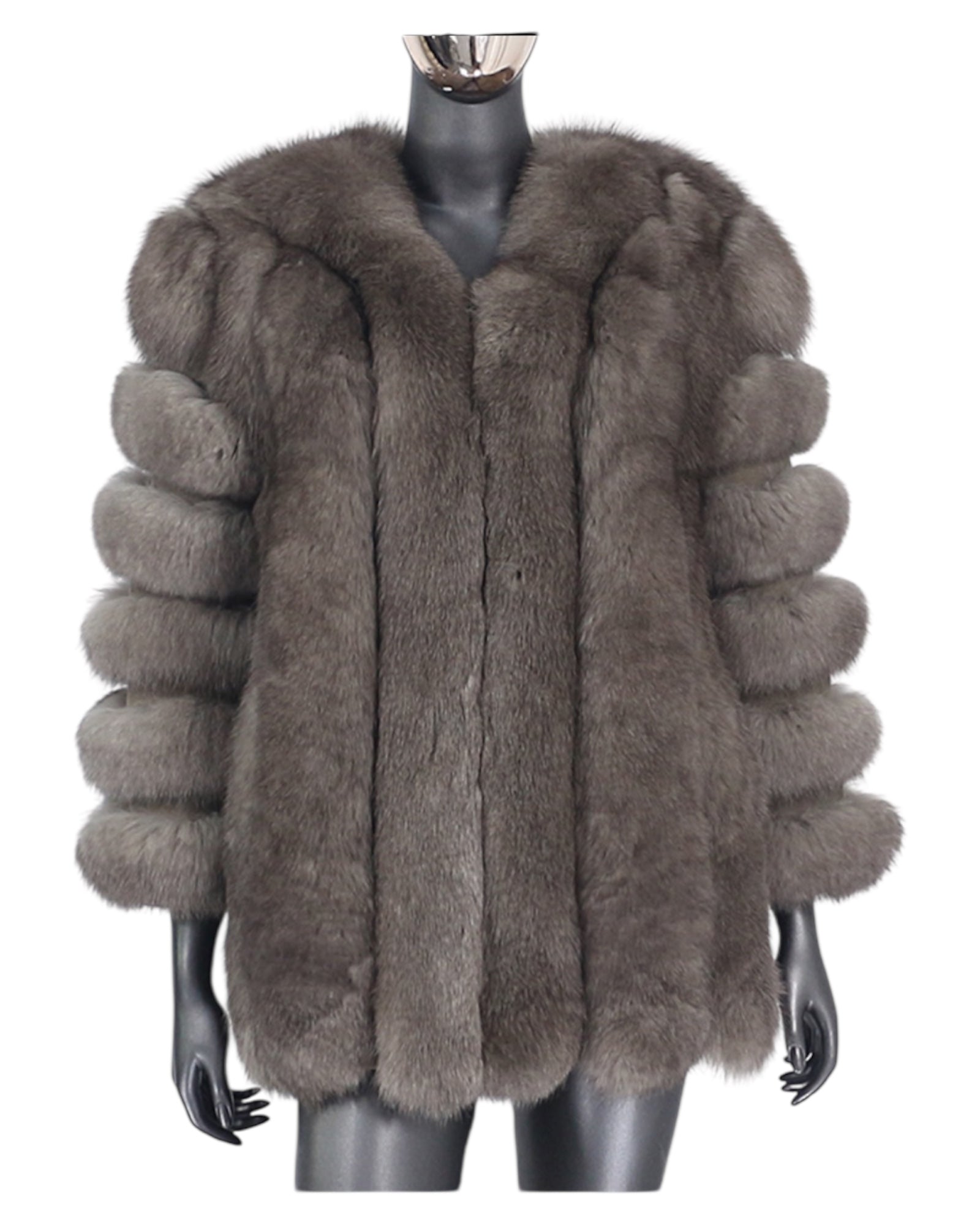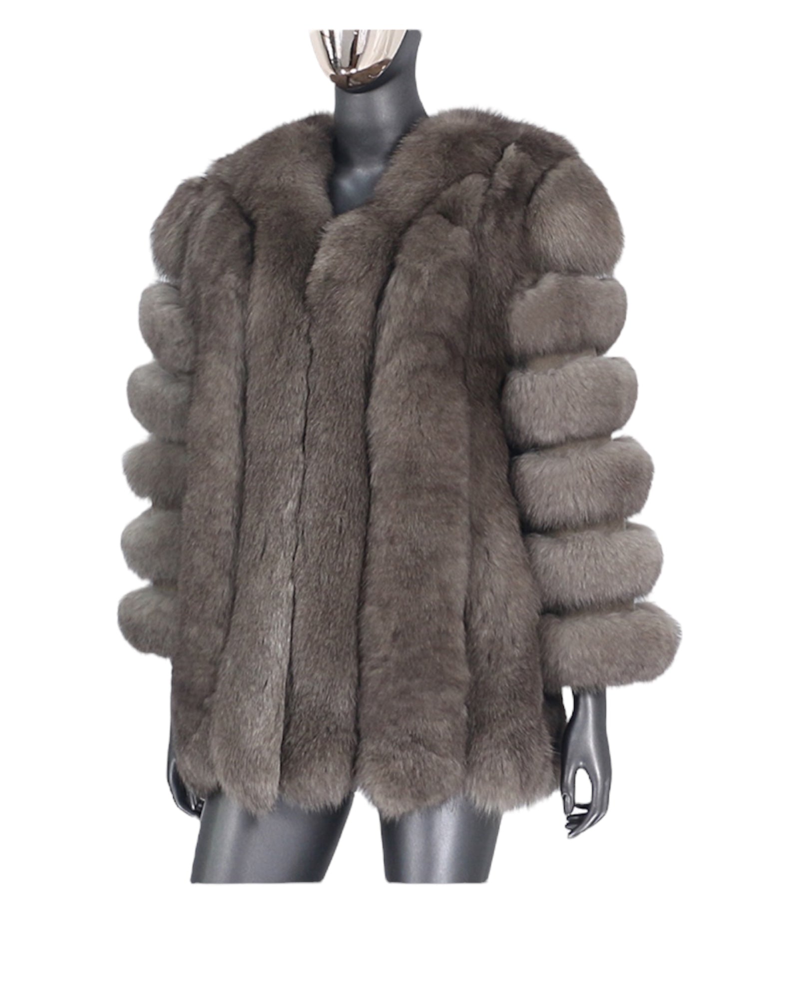 Notre veste en fourrure "Sara" en fourrure de renard particulièrement douce impressionne par sa coupe féminine, tandis que des détails intemporels complètent habilement le look général.