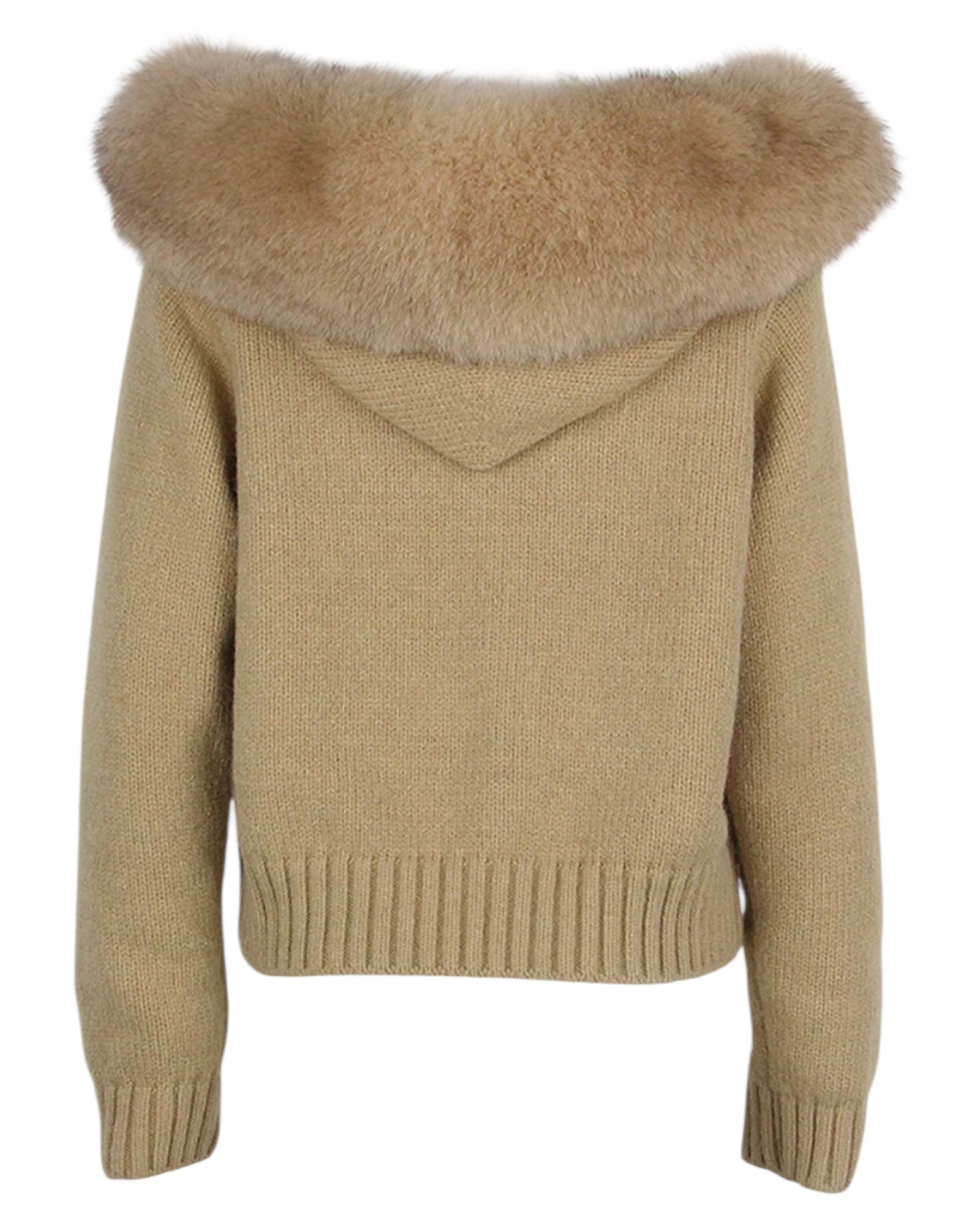Sweat à capuche tricoté "Zip" avec capuche en fourrure véritable marron