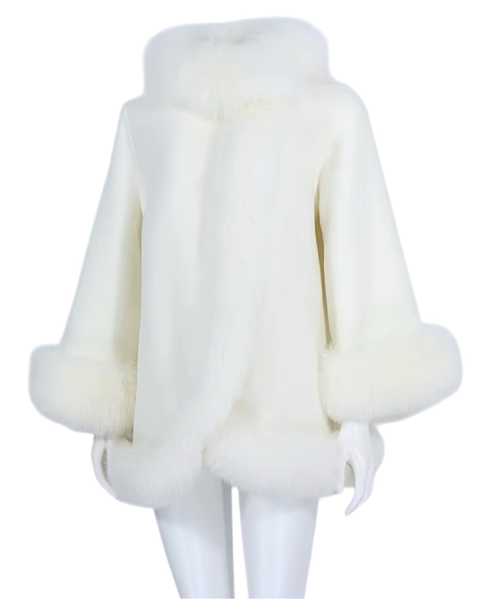 Verfeinert mit einem Kragenbesatz und Manschetten aus echtem Fuchspelz.