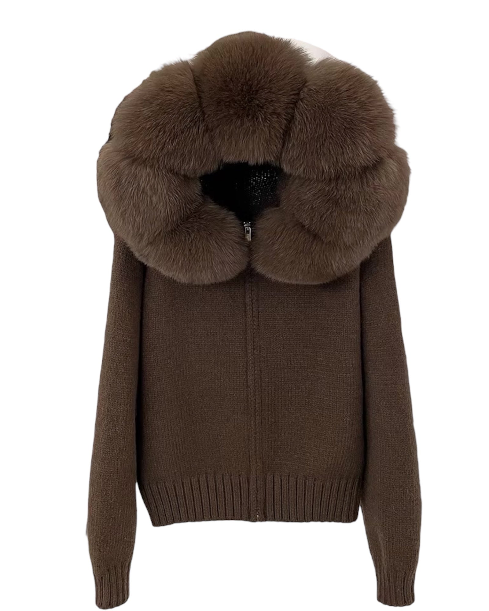 Strickhoodie "Zip" mit Echtpelz Kapuze braun