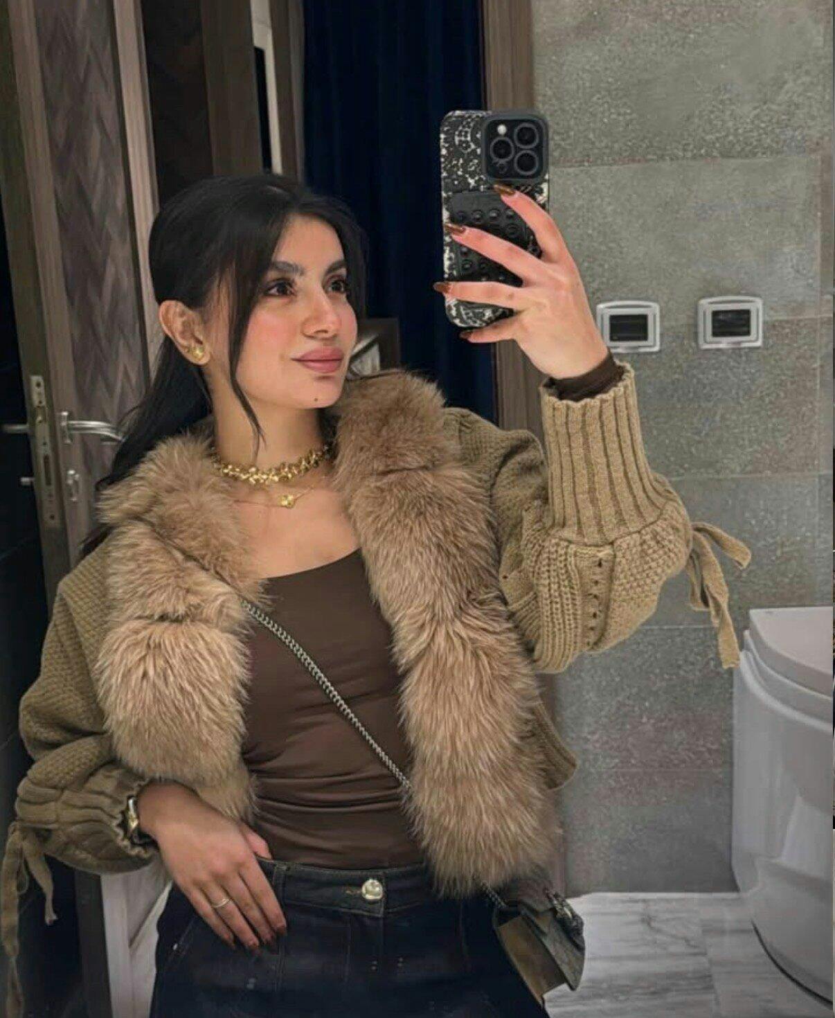 WOLLCARDIGAN "Yasi" mit Echtpelzkragen braun